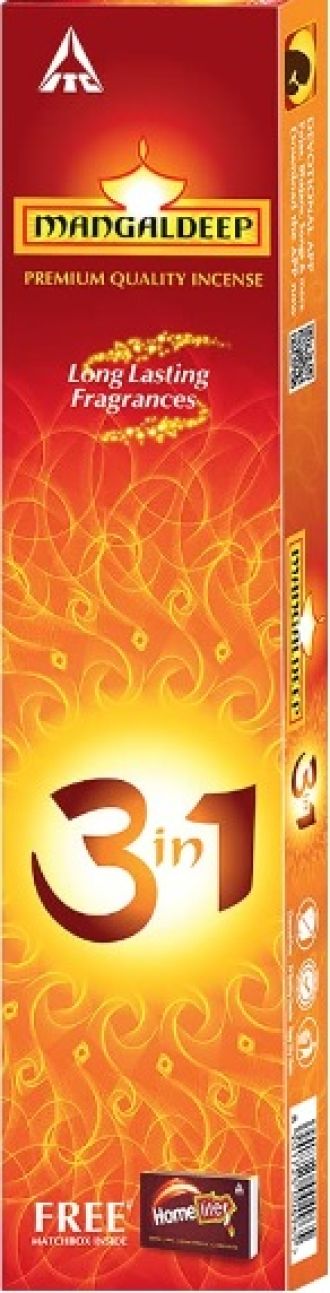 Mangaldeep 3in1 Agarbatti - Chandan, Rose & Jasmine