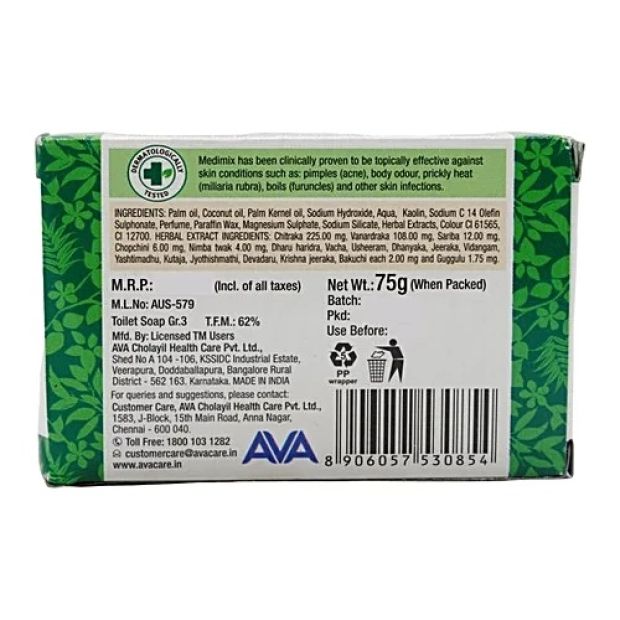 Medimix Bathing Bar - Ayurvedic Soap with 18 Herbs is the world's biggest selling ayurvedic bath soap that is suited for every skin type. It is totally herbal with a 60% coconut oil base and contains no animal fat. It is well-known for its preventive, curative and beautifying qualities for skin, hair and scalp. Natural