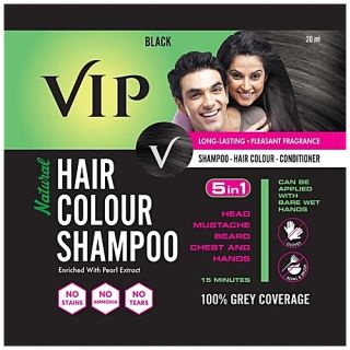 Vcare Shampoo Hair Colour Triple Plus - No Paraben & Sulphates, Black, 15 ml